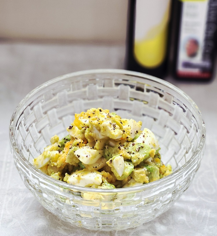 アボカドには良質な脂質(オレイン酸)とビタミンB群・E・K、カリウムなどが含まれますが、不足するたんぱく質を補うため卵を加え、バランスの良い一品になりました。